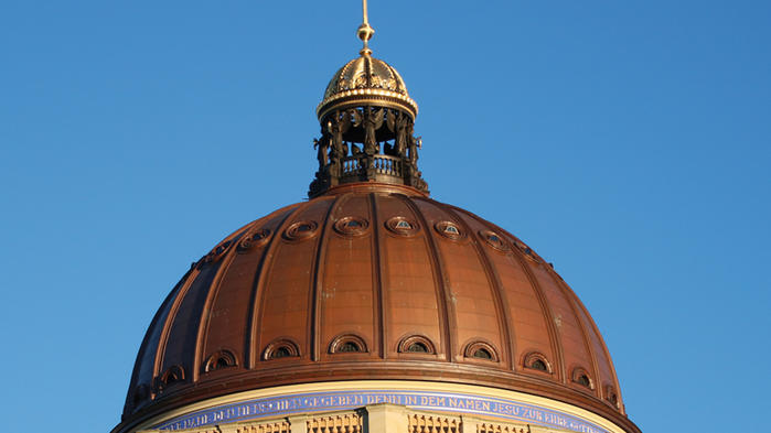 Steht der von Friedrich Wilhelm IV. zusammengefügte Bibelvers für ein christlich legitimiertes Recht auf Unterwerfung oder ist er ein bauhistorisches Dokument? Schon lange ist das biblische Spruchband um die Kuppel der teilrekonstruierten Hohenzollern-Residenz in Berlin Gegenstand der Debatten. Spätestens seit Dezember des letzten Jahres werden die kritischen Stimmen im Bundestag und im Berliner Abgeordnetenhaus nicht mehr ignoriert. Ein Hintergrundbericht. mehr...