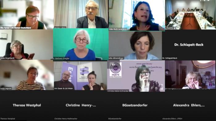 Die Videokonferenz der Gesellschaft Chancengleichheit zum Thema Geschlechtergerechtigkeit und Parität, die am 4. Juli im Bundestag aufgezeichnet wurde, ist jetzt ONLINE. In den fünf Filmsequenzen geht es um die Frage, wie wir in diesem Jahrzehnt die Gleichstellung erreichen und welche Chancen ein paritätisch ausgestaltetes Wahlrecht hat. mehr...